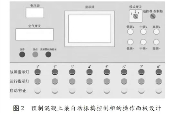 在使用附著式振動(dòng)器進(jìn)行振搗時(shí),其振搗質(zhì)量主要取決于控制振動(dòng)器的施工人員,若該施工人員經(jīng)驗(yàn)豐富,技術(shù)較好,則振搗的混凝土質(zhì)量較好。反之,則混凝土質(zhì)量較差。因此通過自動(dòng)控制來代替人為操作,可有效保證混凝土的振搗質(zhì)量。對(duì)預(yù)制梁的混凝土振搗控制柜進(jìn)行改進(jìn),使其能自動(dòng)控制開啟、關(guān)閉和振搗時(shí)間,并能遠(yuǎn)程遙控,提高澆筑質(zhì)量節(jié)省人力降低生產(chǎn)成本。