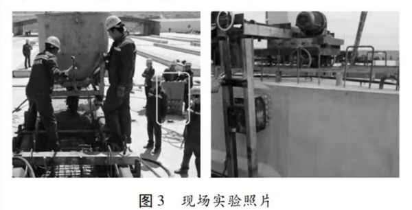 為了推動(dòng)施工工地標(biāo)準(zhǔn)化建設(shè),提高裝備自動(dòng)化程度,預(yù)制混凝土梁自動(dòng)振搗控制柜在京藏高速路某標(biāo)段預(yù)制梁進(jìn)行了試用,取得了預(yù)期效果,提高了混凝土澆筑質(zhì)量,降低了生產(chǎn)成本。圖3為現(xiàn)場實(shí)驗(yàn)照片。